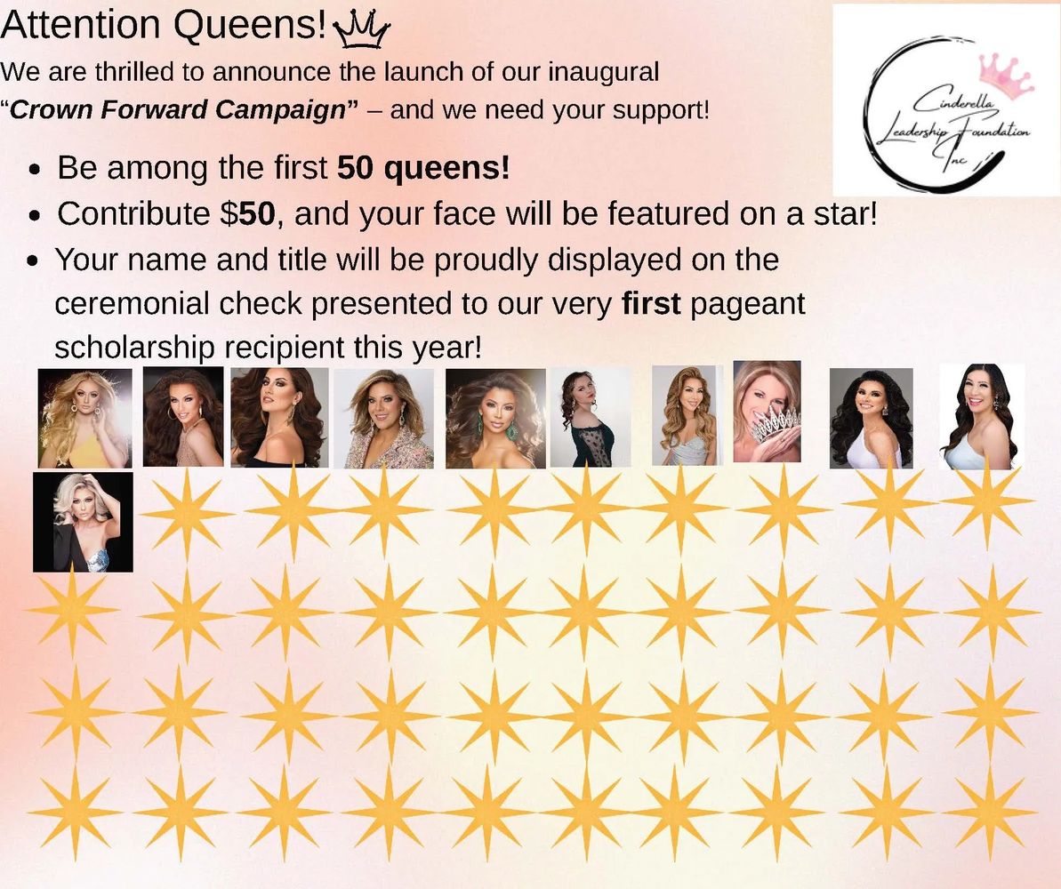 The Cinderella Leadership Foundation exists to empower young women through two distinct scholarship programs: one for first-time pageant participants who lack the financial means to compete, and another for graduating seniors pursuing degrees in business or entrepreneurship. We believe every young woman deserves the opportunity to grow in confidence, leadership, and purpose—on stage and in society.